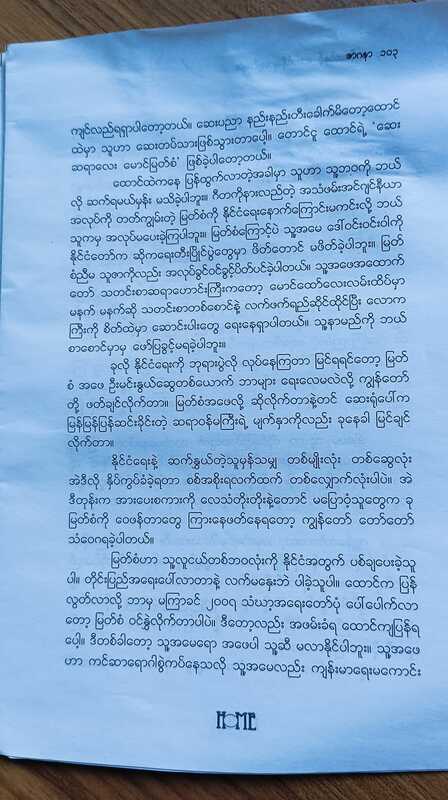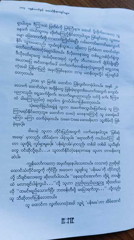 ကျွန်တော်အနေနဲ့အတော့်ကိုစဉ်းစားရပါတယ် ။ @အဲ့ဒီကာလ က ဘဘဦးဝင်းတင်ရဲ့ ဖောင်ဒေးရှင်း အကူအညီနဲ့ နိုင်ကျဉ်း တွေနာမကျန်းဖြစ်တဲ့အခါ ဂရင်းခရော့ က ကုသပေးပါတယ်။ ဒါပေမယ့်ဆေးရုံမှာ ကုသမှူခံယူနေတဲ့သူတစ်ယောက်ကို ကျွန်တော်က ကိုယ့် အနူပညာလက်ရာအတွက်ဆိုပြီး ဘလိုင်းကြီးသွားပြီး ပလာစတာတွေယူဘို့တော့ အတော်မသင့်တာပါ။ ပြီးတော့ ဒီမိုယူတဲ့ကိစ္စက အတော်လေးရှုပ်ထွေးပါတယ် ရေထဲမှာ ပလာစတာလိပ်ကို နှစ်ပြီးလက်ကိုတစ်ချောင်းခင်းပတ်ရတယ် အနည်းဆုံး ဆယ့်ငါးမိနစ်လောက်ကြာပါတယ်။ပြီးရင်လဲ ကျောက်ပတ်တီးခြောက်ဘို့ နာရီဝက်လောက်စောင့်ရပါသေးတယ်။ ပြီးတော့ ကင်မရာနဲ့ တောက်လျောက်လိူက်ရိုက်နေရမှာ သိပ်မလွယ်ဘူးလို့ပြောတော့ သူက ကိစ္စမရှိဘူး ဘယ်အချိန်လောက်မှာ ဆရာဝန်လဲမလာဘူး လူနာမေးသူလဲမရှိဘူးရှင်းတယ် ။ အဲ့အချိန်လာခဲ့လို့ရတယ်တဲ့။