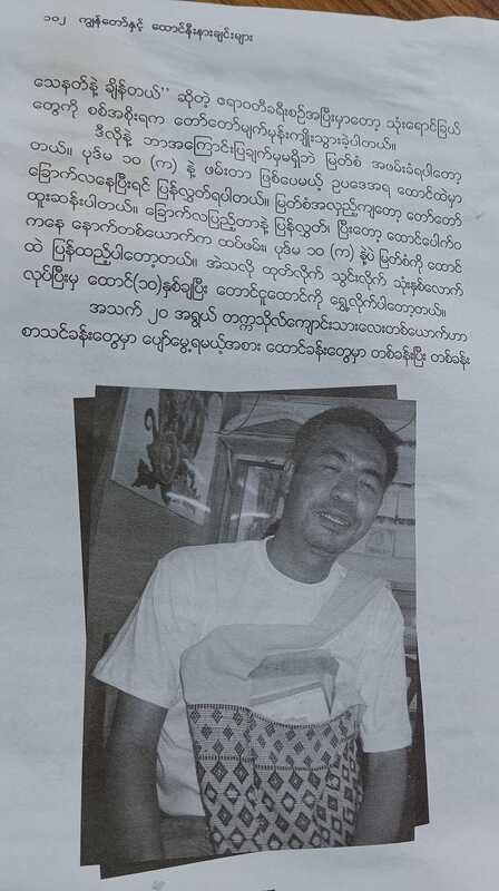သူအရင်လွတ်ပြီး နောက်မှ ကျွန်တော်လွတ်တယ်။အပြင်မှာပြန်ဆုံကြ။အလုပ်အတူတူလုပ်ကြ။သူ့ကျန်းမာရေးကသိတ်မကောင်း။ခါးရိုးမကြီးထိထားတယ်။ထောင်ထဲကရလာတဲ့ ဒဏ်ရာ။ဗဟိုစည်မှာပြလိုက်၊ရွှေဂုံတိုင်မှာပြလိုက်ပေါ့။