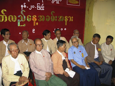 U Win Tin and some other former political prisoners recently released from prisons after long term imprisonment attended the ceremony of the 20th anniversary of the formation of Burmese opposition party, NLD. Some leaders from other alliance political parties attended together with them. Photo – Front from left to right, U Soe Myint, U Than Tun, U Aung Shwe, U Win Tin, U Khin Maung Swe, U Hla Pe. Back from left to right, Pu Kyint Shin Htan, U Than Pe, U Aye Thar Aung, Dr. Than Nyein, Naing Ngwe Thein ( Photo – Internet)