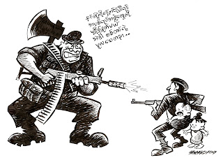 Cartoon Box Cartoon Saw Ngo – Burmese Junta’s Next Target by admin • May 17, 2009 • Comments Off on Cartoon Saw Ngo – Burmese Junta’s Next Target Cartoon Saw Ngo – Burmese Junta’s Next Target May 15th, 2009 Share this: Click to share on Facebook (Opens in new window) Facebook Click to share on X (Opens in new window) X Click to email a link to a friend (Opens in new window) Email Click to print (Opens in new window) Print