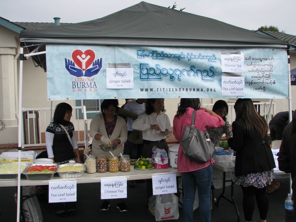 Volunteers from Citizen of Burma Award Organization – SF Chapter, a Burmese social charity group also opened prickled tea leaf and ginger salad shop as a charity sale.