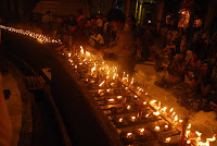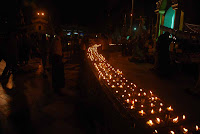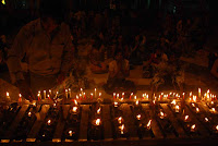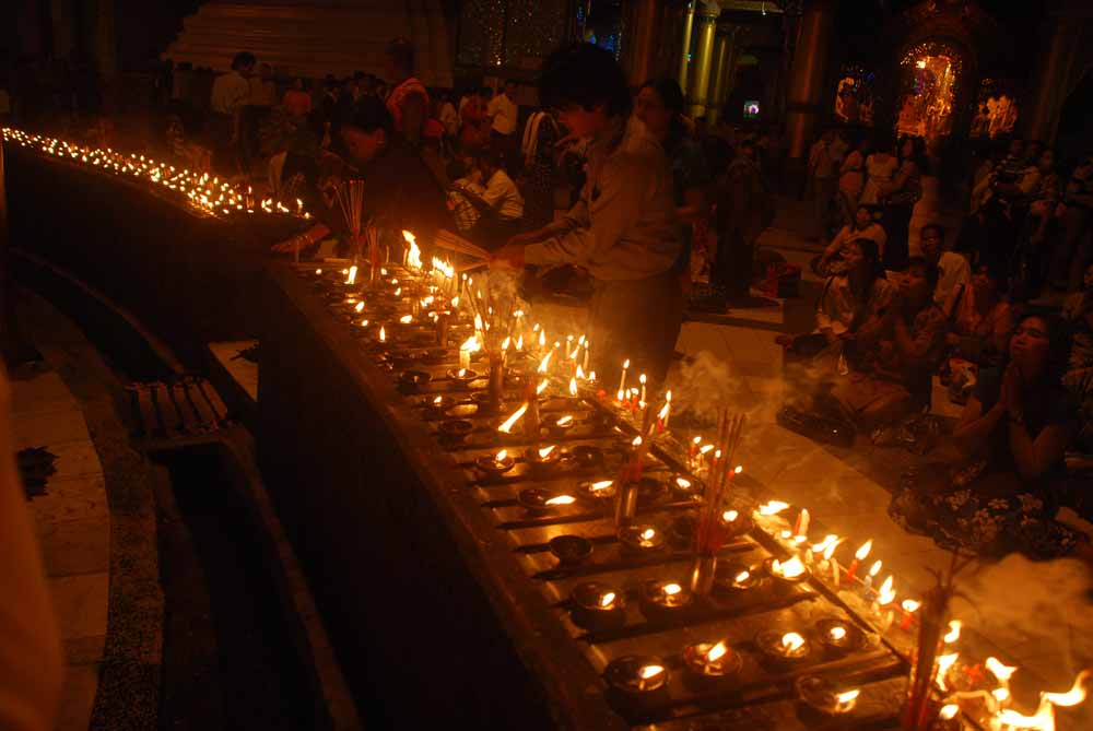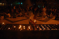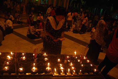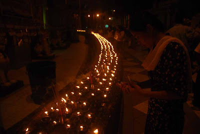“Worshipping with flowers and candles on the platform, I felt extremely delighted; doing merit on the first day of a year makes my mind peaceful, except for that placing notice board and searching among pilgrims for bombs at southern stairway,” said a worshipper.