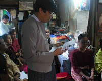The fifth annual ceremony of Taw Bayar Lay literary award was held at the home of the author Taw Bayar Lay (deceased) on Shwe Dagon pagoda road, at 10 am, yesterday morning. As the permit to host the ceremony in other places was not granted by authority concerned, the event has been, since the third time, organized in cramped conditions of his home.
