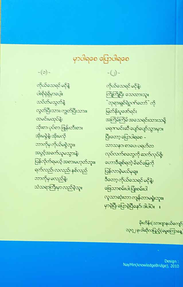 In the ceremony, “Moe Twe Your Nay Tae,” a collection of short stories by Ngwe Zin Yaw Oo (Moegoat) (Sait Ku Cho Cho publishing house/first edition in 2010), was awarded the best for short story category and a prize went to the non-fiction article collection by Saya Moe Hein “Sima Htoe Kwei Mapit Panar Masat Thou Taw Naing The” (Thiha Yatanar publishing home/ first edition on 10.12.2010).