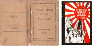 (Left: the old cover of “Three Years Under the Japs;” it had “Published by KHIN MYO Chit, 24 Zabuzi Street, SANCHAUNG” and “printing at THE ROYAL STATIONARY, 408-410 Dalhousie Street, RANGOON” written on the back. The addresses are now hard to find. They contain the old memories of our grandparents, despite the fact that they lived in the place for only a year or two. Right: The new cover of the book in 2011.)