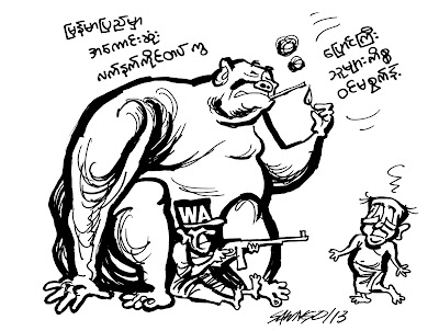 (Rumors say China is backing Wa Ethnic, so Burmese Regime, Beware!!!) – Cartoon by Saw Ngo