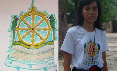 (Photo left)-The mark which was actually drawn on the post of the Myingyan pagoda, and (photo right) -I seemed was proud of myself to wear this T-shirt.