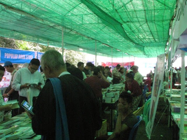 There were rows of book stalls, and hundreds of bookshops at one of the temporary roofs, made with strong cloth, which attracted people to browse them the whole day. People walked through the never-ending book fare paradise.