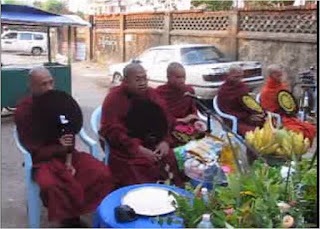 Holidays are continuing after three days of Thingyan Festival. People continued their good deeds including buying live-fishes from the market, and free them into the river, or free the caged-birds into the sky, and inviting monks to recite Paritta Suttas – Holy Discourse of Protection in their homes, or offices, or streets, and listened to the recital of Paritta Suttas respectively. For those doing good deeds, people have to offer seven-day-born flowers and leaves and the pot in front of the alter of Buddha.