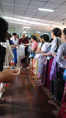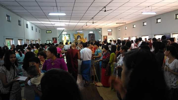 If one were born on the full moon day of Kason, it would be very grateful for him having such noble coincidence. Sunlun Sayadaw U Wara was born on the full moon day of Kason. He was now 71st years old. I was present at the 7th Mile Sunlun monastery for His birthday anniversary of Sunlun Sayadaw U Wara on the full moon day of Kason today. There were 16 monks attended the alms-giving ceremony, and hundreds of Buddhists came and participated. One can offer any gifts to each monk when monks went forth to the way where people waited.