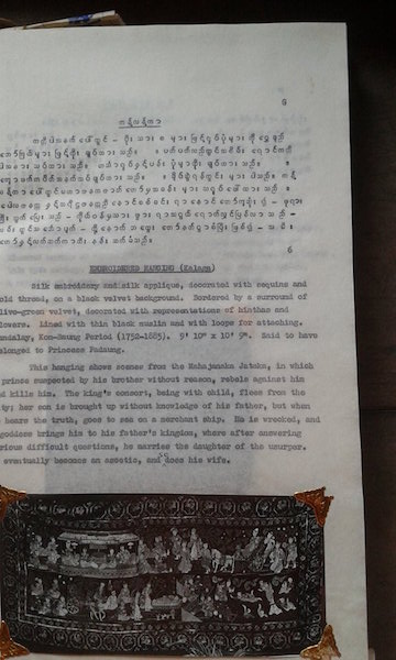 Mrs. Erica Drucker was collecting, and researching the history and context of the Museum collection, and making a complete Burmese and English inventory of all the Museum holdings. Grandma was busy when she came, and they were discussing about the book. The finished book was typewriting, and photos were stick to each page. The large, long and heavy book with full collections, and classifications of all the items they had researched. The book was complete, enormous, and perfect catalogue I had never seen in my life before. No computer, no scanner, no digital, or without the hand of the age of technology, it comes out to public admirably.