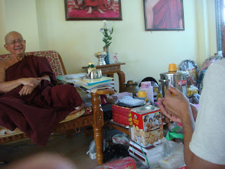 (Sayadaw U Wara warmly welcomed, and encouraged us to practice meditation.)