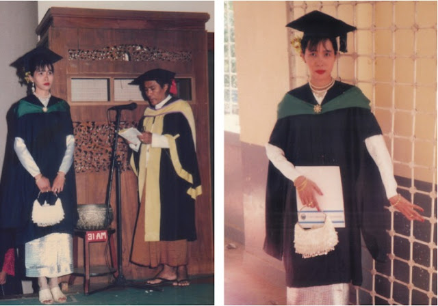 I did not like his suggestion. He asked me to come next day. On the third day, he said the same answer. I had not patience enough listen his suggestion. I said to him, ‘Okay, as you wish. I will never come again. I will never attend this kind of Graduation. I do not care this Grading Certificate if I will never receive for the rest of my life. You know, my grandmother, Khin Myo Chit, a Burmese author, who had just passed away just 3 weeks ago. I tried to continue this routine work by your rule and regulation although my heart was broken. But now I give up. I will leave.’ I said these words not to hope for having a Gown. I could not help saying such words. When I stood up and turned to leave, his face changed and said wait a little more. After a few minutes, we received Master Gowns from the office.
