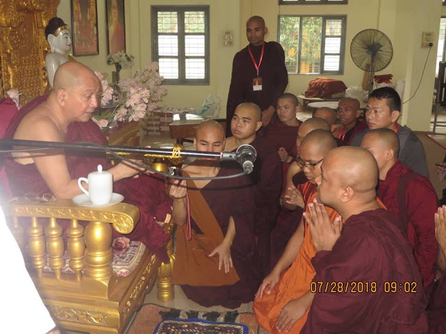 On the 28th July of 2018 at 7:00 AM, The Gabaraye Sunlun Gu Kyaung Sayadaw U Wara met the students from The International Theravada Buddhist Missionary University (ITBMU) at the Sunlun Monastery at 7th Miles.