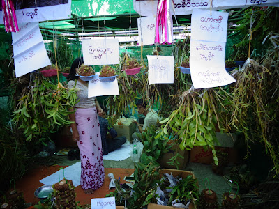 Those flowers and plants came from all over Burma. Their names were funny. See, ‘Beautiful smile of Lottery Win’, ‘Venus Fly Trap’, ‘Golden fruit from the golden plant’, ‘Chilli Flowers’, ‘Red Parrot’, etc. Some name seemed sad, ‘Flowers Lonely as a cloud‘. Orchids have a million names. I did not remember all. I think Upper Burma flowers would die shortly in the hot weather here. But people did not care. They bought them without thinking.