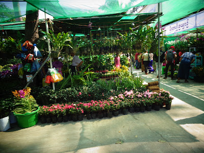 There were only two rows of bamboo and thatch huts which are market stalls. That small part of the market ground was a wonderland. Plants and beautiful flowers you may wander and browse for hours and come away finally laden with pretty little things. I was not a kind of good gardener. But I was interested in reading the names of flowers and plants which were written on the pieces of papers hung around at the stalls.
