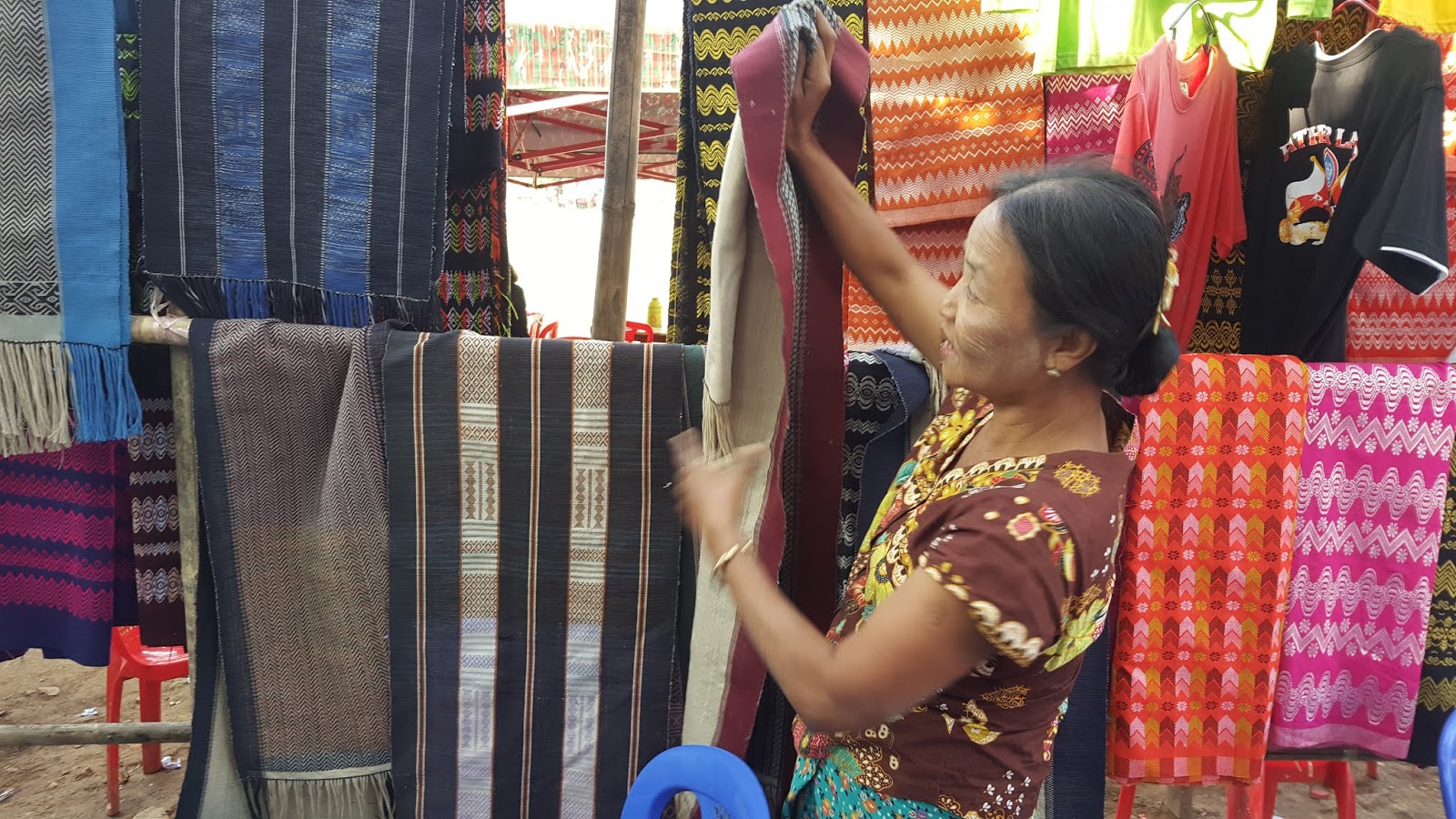 After our long sight-seeing of the Shittaung Pagoda around at the top of the mountain, we went back to the gate where we ascended. There were shops selling beautiful Rakhine traditional wears and longyis. I rarely wore a longyi, but I liked to buy some pretty scarfs.