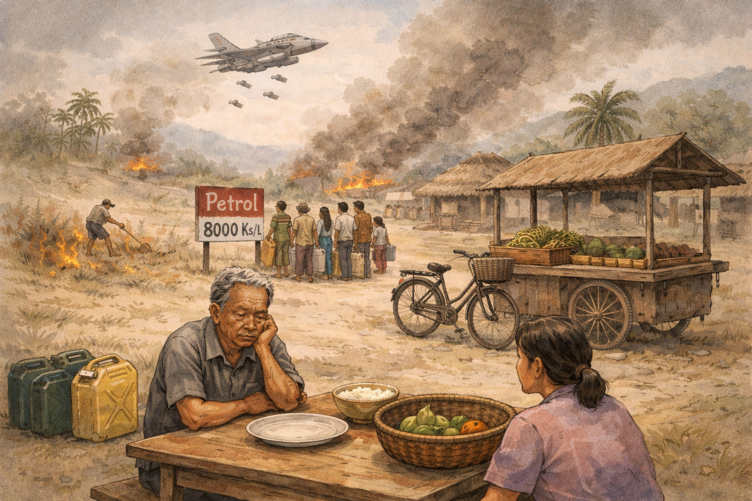 Amid frustration over rising petrol prices, some villagers found a strange source of comfort. “Now that Iran is at war, the junta will have trouble getting fuel. Maybe they won’t be able to bomb us because of aviation fuel shortages,” they said hopefully.