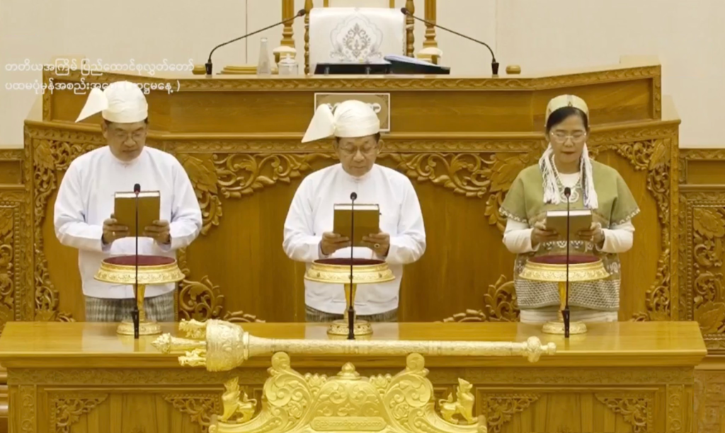 After holding onto the position of Commander-in-Chief for 15 years, and after seizing political power by alleging fraud in the 2020 election, the military leader has now, more than five years and two months after the coup, formally taken the position of President by taking the oath inside the parliamentary hall.