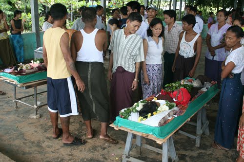 Ms. Than Myint Aung, secretary of Free Funeral Services Society (Yangon), and the staff members helped transport the bodies of Daw Ohn Yee (age 67) and her son U Khin Oo (age 48) from South Dagon township, Yangon for cremation at Kyi-Su cemetery at 9:30 am, 7th October 2010 on Thursday.