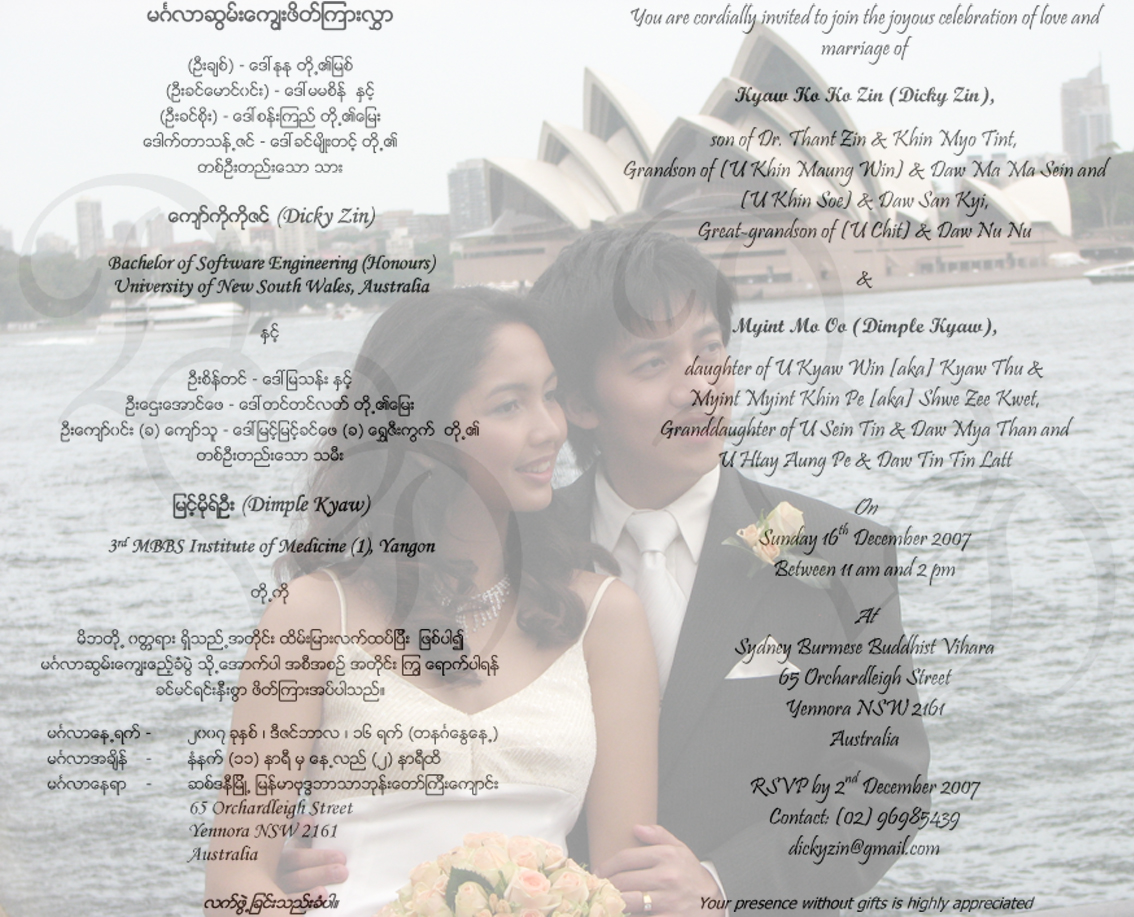 >Kyaw Thu invites his friends and families of his daughter’s wedding via email