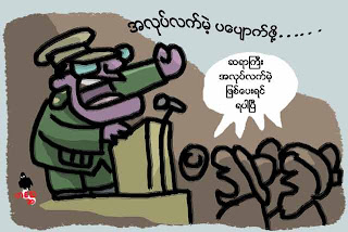 ၁၈ ႏွစ္အၾကာ၌ စစ္တပ္၏ တရား၀င္အစိုးရ ျဖစ္ဖို႔အခြင့္အေရး အတြက္ လူထုဆုံးျဖတ္ခ်က္ကို ေနာက္တႀကိမ္ ထပ္မံေတာင္းဆိုေနသည့္ ယခုအခါတြင္ လူထုအေနျဖင့္ ယခင္ကလိုပင္ ရွင္းရွင္းလင္းလင္း အေျဖေပးသင့္ပါသည္။ အေကာင္ႀကီးသည့္ ဂဏန္းလို ႏွစ္ခါျဖတ္ရသည့္ အျဖစ္ႏွင့္ ၾကံဳရသည္ကိုေတာ့ ေအာင့္အီးသည္းခံရေတာ့မည္ ျဖစ္ပါသည္။