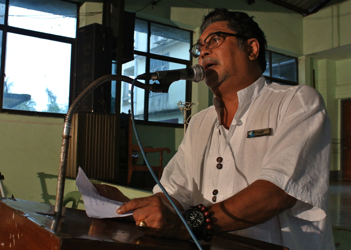 မံႈပ်ပ် ခန္းမထဲသို႔ ကၽြန္ေတာ္တို႔ ေရာက္႐ိွသြားေသာအခါ ခန္းမတစ္ခုလံုး ၿငိမ္သက္ေနသည္။ ခန္းမ ထဲ႐ိွ အစီအရီခ်ထားေသာ ထိုင္ခံုမ်ားေပၚတြင္ ထိုင္ေနေသာသူအားလံုးသည္ တုတ္တုတ္မွမလႈပ္၊ အာ႐ံု တစ္ခုကို စူးစိုက္လွ်က္႐ိွေနသည္။ ထိုခန္းမသည္ကား ဝိပႆနာက်င့္ႀကံရာ တရားဓမၼအားထုတ္ရာ ခန္းမ တစ္ခုေတာ့ မဟုတ္ေခ်။ ၿငိမ္သက္တိတ္ဆိတ္ေနေသာ ခန္းမအတြင္းသို႔ ကၽြန္ေတာ္တို႔ေရာက္႐ိွ ေနရာယူ ၿပီးေသာအခါ ေ႐ွ႕ဆံုးစာပြဲထိုင္ခံုတြင္ ထိုင္ေနေသာ အမ်ိဳးသမီးငယ္တစ္ဦးသည္ ႏႈတ္ခြန္းဆက္စကားေျပာ ကာ ကၽြန္ေတာ္၏ အထၳဳပတၱိအက်ဥ္းခ်ဳပ္အား ခန္းမတြင္း႐ိွ လူအမ်ားထံ ဖတ္ၾကားေတာ့သည္။ ထို႔ေနာက္ ကၽြန္ေတာ့္အား စကားေျပာေပးပါရန္ ေမတၱာရပ္ခံခဲ့သည္။