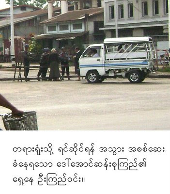 လမ္းမၾကီးကို ျဖတ္ပိတ္ထားေသာ လံုျခံဳေရးရဲမ်ားကို အင္းစိန္ေစ်း အနီးရွိ လူထုက ဝိုင္းဝန္း ၾကည့္ရႈေနခဲ့ၾကသည္။ အန္အယ္လ္ဒီ ပါတီဝင္ အခ်ိဳ႕ကိုလည္း သံဆူးၾကိဳး ကာထားေသာ အနီး တစ္ဝိုက္တြင္ ေတြ႕ရသည္။