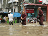 ရန္ကုန္မွာ မိုးမ်ား ၁နာရီေက်ာ္ေလာက္ ေတာက္ေလွ်ာက္ ေကာင္းၿပီ ဆိုရင္လမ္းေတြ အားလံုးေရလွ်ံ၊ ကားေတြ စက္ရပ္ကုန္၊ လမ္းေတြပိတ္၊ လူေတြလည္း ခါးေတာင္းက်ိဳက္ၿပီး ေခ်ာင္းထဲကို ျဖတ္ၾကရေတာ့တယ္။