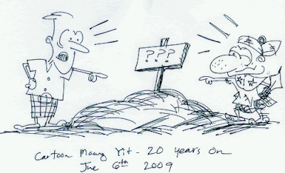 ဟိုတေလာကေတာ႔ အႏွစ္ ေလးဆယ္ေက်ာ္ အုပ္ခ်ဳပ္လာတဲ႔ အဖိုးႀကီးလဲ အစားမ်ားလို႔ ဗိုက္ေပါက္ထြက္ ေသသြားၿပီ။ အစုိးရရုံးတိုင္း အလံ တိုင္တ၀က္မဟုတ္ဘဲ ေအာက္ထိ ခ်ရမယ္ ဆိုလို႔ ျမန္မာျပည္အလံေတြ ေျမေပၚပုံေနတာ ေတြ႔ခဲ႔ရေသးတယ္။