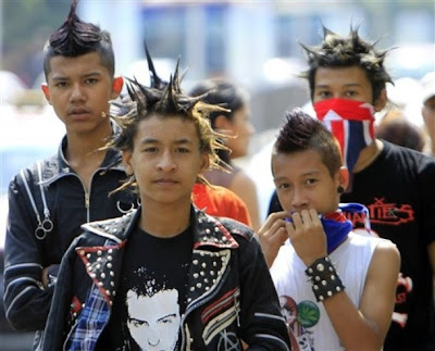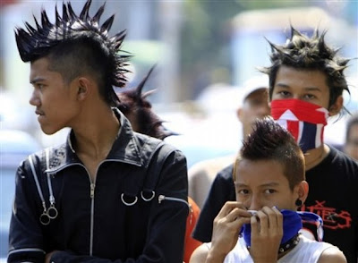 ျမန္မာႏွစ္သစ္ကူး သႀကၤန္ ကာလတြင္ ရန္ကုန္မွ လူငယ္တခ်ဳိ႕သည္ ဆံပင္ပုံဆံ အဆန္းမ်ားျဖင့္ ေရပက္ခံထြက္ေလ့ ရိွသည္။ (ဓာတ္ပုံမ်ား – AP)