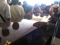 ဦးေဇယ်ာစိုး၏ ရုပ္အေလာင္းကုိ ရန္ကုန္ေလဆိပ္မွ ထိန္ပင္ အေအးခန္းသုိ႔ နာေရးကူညီမႈ အသင္း (ရန္ကုန္) အဖဲြ႔သားမ်ားက သယ္ေဆာင္လာစဥ္
