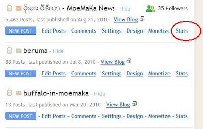 ဂူဂယ္က သူ႔ကုိ အားကုိးသည့္ ဘေလာ္ဂါမ်ား သေဘာက်မည့္ အက်ဳိးေဆာင္မႈ တခုကုိ ယေန႔ မိတ္ဆက္ေပးလုိက္သည္။ Stats ဟု အမည္ရေသာ ထုိအက်ဳိးေဆာင္မႈကုိ ဘေလာ့ကုိ စီမံခန္႔ခဲြသည့္ စာမ်က္ႏွာတြင္ ေတြ႔ႏုိင္သည္။