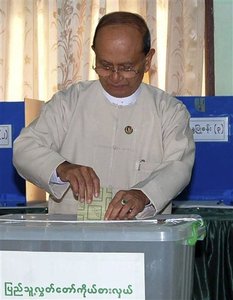 ယေန႔ ေန႔ခင္းတြင္ ျမန္မာစစ္အစုုိးရ၏ ျပည္သူ႔လႊတ္ေတာ္က ဒုုတိယသမၼတ ဗိုုလ္ခ်ဴပ္ၾကီးေဟာင္း သိန္းစိန္ကိုု သမၼတအျဖစ္ မဲ ၆၅၉ အနက္က ေထာက္ခံမဲ ၄၀၈ မဲႏွင့္ ခန္႔အပ္လိုုက္ျပီဟုု သတင္းမ်ား ထြက္ေပၚလာသည္။ သိန္းစိန္သည္ လက္ရွိ အာဏာရွင္ နအဖ စစ္ေကာင္စီက ခန္႔အပ္ခဲ့ေသာ ၀န္ၾကီးခ်ဳပ္ ရာထူးလက္ရွိျ႔ဖင့္ ၾကံ့ဖြံ႔ပါတီမွ ေရြးေကာက္ပြဲ ၀င္ခဲ့သူ စစ္ဗိုုလ္ခ်ဴပ္ေဟာင္းျဖစ္သည္။