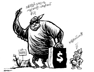 ဒါလည္း မလုပ္မျဖစ္ေတာ့ေပ။ တေန႔ကပင္ ျပည္ႀကီးငေတ လူ႔အေလတေယာက္၏ ရြံ႕စရာမွန္း မသိ၊ ေထြးစရာမွန္းမသိ စကားမ်ားကို ၾကားလိုက္ရေသးသည္။ တိုင္းျပည္ႀကီးေလာက္လန္း ထိုလူ႔ေပါက္ပန္း သူေဌးေလးသည္ တတိုင္းျပည္လံုး ဆင္းရဲတြင္း နက္ေစသည့္ တပါတီအာဏာရွင္အစိုးရကို အမ်ားတကာ ျဖဳတ္ခ်ေနခ်ိန္ သူတို႔သားအဖ ကၽြန္းခုတ္ၿပီး ေဒၚလာေတြ အလုပ္ျဖစ္သည့္ အေၾကာင္း ေျပာသြား၏။