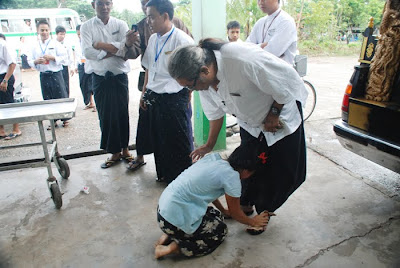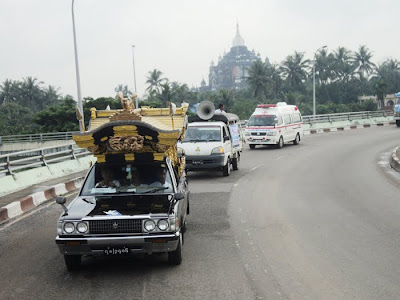 ဥကၠ႒ ဦးေက်ာ္သူ ဦးေဆာင္၍ အထူးနိဗၺာန္ယာဥ္ႀကီး၊ ေ႐ွ႕ေျပးလမ္းရွင္းယာဥ္၊ အေရးေပၚ လူနာတင္ယာဥ္၊ နာေရးကူညီမႈအသင္း(ရန္ကုန္) ၀တ္႐ြတ္အဖြဲ႔ေမာ္ေတာ္ယာဥ္ႏွင့္ နာေရးပို႔ေဆာင္သူမ်ား လိုက္ပါရန္ BM ေမာ္ေတာ္ယာဥ္ (၅) စီးတုိ႔ျဖင့္ စည္ကားစြာ နာေရးေနအိမ္သုိ႔ သြားေရာက္ခဲ့သည္။ BM ေမာ္ေတာ္ယာဥ္မ်ားသည္ နာေရးကူညီမႈအသင္း (ရန္ကုန္) ၏ အသင္းသား ကိုစည္သူႏွင့္ ကိုသန္းထိုက္တို႔မွ အကူအညီေပးခဲ့သည္။ နာေရးအိမ္သို႔အေရာက္ နိဗၺာန္ေမာ္ေတာ္ယာဥ္ေပၚမွ ႏိုင္ငံျခားမွလာေသာအေခါင္းအား အသင္းသူမ်ားမွ သယ္ ေဆာင္ကာ ေနအိမ္အတြင္းသို႔ လက္ဆင့္ကမ္း သယ္ေဆာင္ခဲ့သည္။ ထို႔ေနာက္ ေနအိမ္တြင္ က်န္ရစ္သူ နာေရး႐ွင္မိသားစုအား အသင္းသူ/သားမ်ား စုေပါင္းထည့္၀င္လွဴဒါန္းထားေသာ အလွဴေငြ (၂၂၃၀၀၀) က်ပ္တိတိႏွင့္ ရက္လည္ဆြမ္းသြပ္ပြဲ၌ သံဃာေတာ္အတြက္ သကၤန္း တို႔အား လွဴဒါန္း၍ သာဓုအႏုေမာဒနာ ေခၚဆိုခဲ့ၾကသည္။