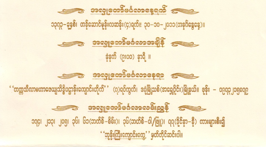 သိကၡာ ထပ္ပြဲရွိပါတယ္။ နံနက္ ၉ နာရီပါ။