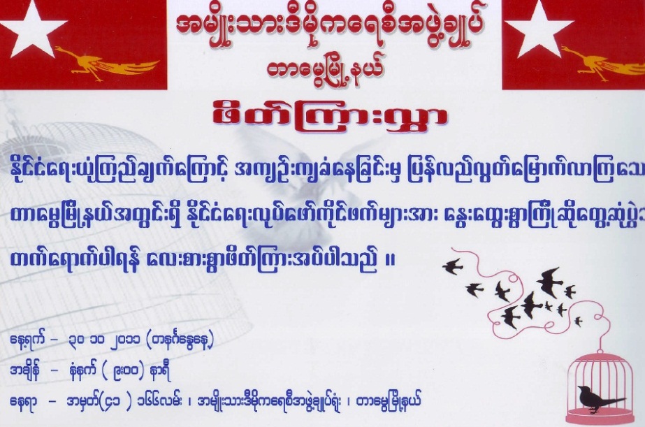 တာေမြၿမိဳ႕နယ္ အမ်ိဳးသား ဒီမုိကေရစီ အဖြဲ႕ခ်ဳပ္ရံုးမွာေတာ့