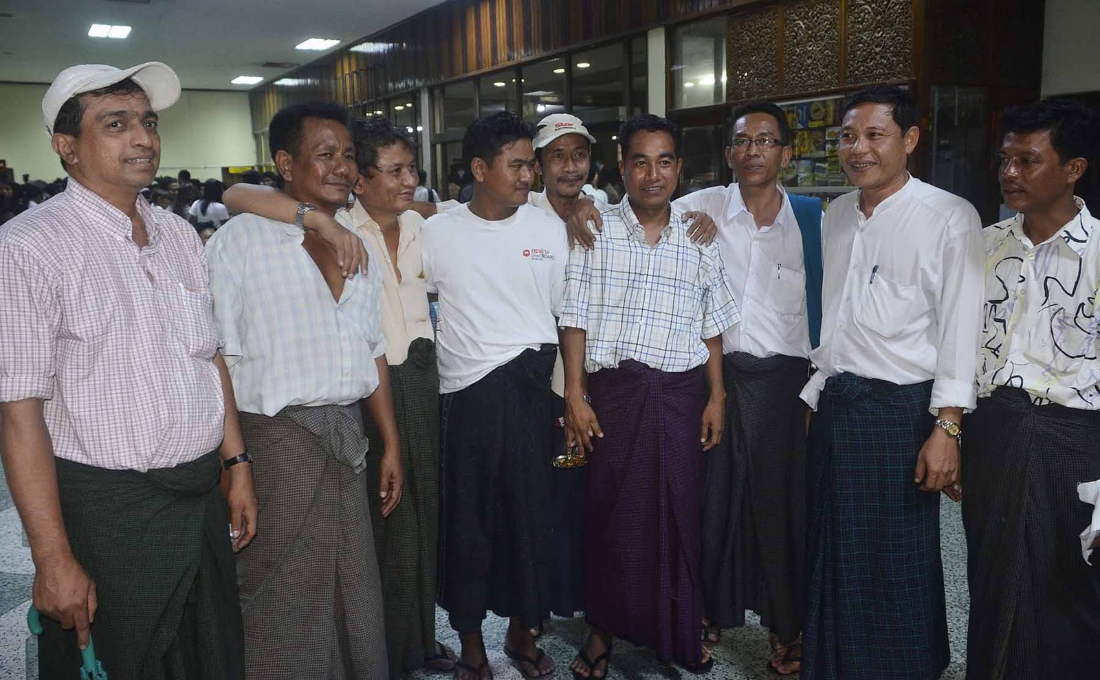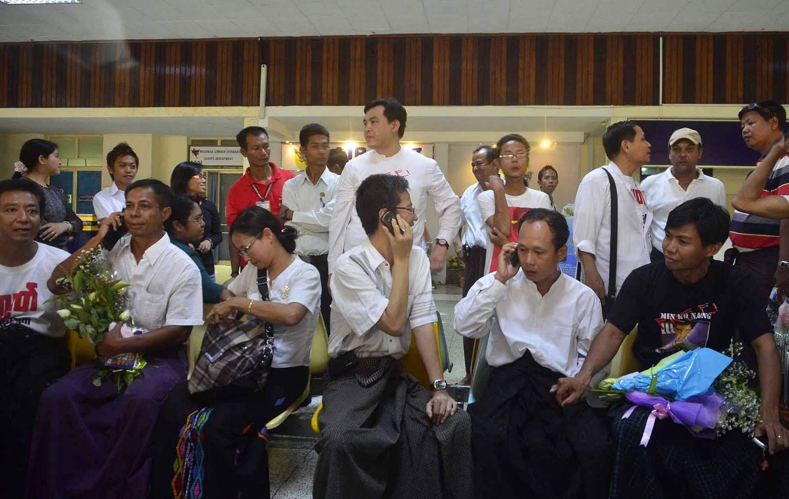 မဂၤလာဒုုံေလဆိပ္မွာ ေရာက္ရွိလာတဲ့ ႏိုုင္ငံေရးအက်ဥ္းသားမ်ားနဲ႔ မိသားစုုမ်ား