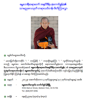 ဓမၼေဘရီဆရာေတာ္ အယ္လ္ေအတြင္ မ်က္စိကုသျပီး တရားသင္တန္းမ်ား ဆက္၊  ေရွ႔လ ျမန္မာျပည္ ျပန္မည္