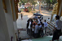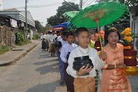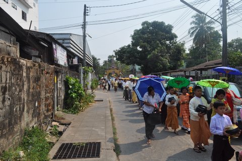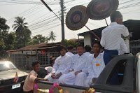 မတ္ ၁၆၊ ၂၀၁၃ ေန႔လည္ ၂ နာရီ အခ်ိန္တြင္ မေနာျဖဴစင္ေရလွဴအသင္း (မဲေဆာက္) နာေရးကူညီမႈအသင္းမွ ဦးစီျပီးက်င္းပျပဳလုပ္အပ္ေသာ ငါးဆူေတာင္ဆရာေတာ္ ဘဒၵႏၱစႏၵိမာ ၏ တရားစခန္းအၾကိဳးစုေပါင္းရဟန္းခံ ရွင္ျပဳပြဲ (ရွင္းအပါး (၆၄) ပါး) ကို မဲေဆာက္ ေက်ာင္းၾကီး ေက်ာင္တိုက္ မွမဲေဆာက္ျမိဳ႕တြင္းသို႔ လွည့္လည္ခဲ့ပါသည္။