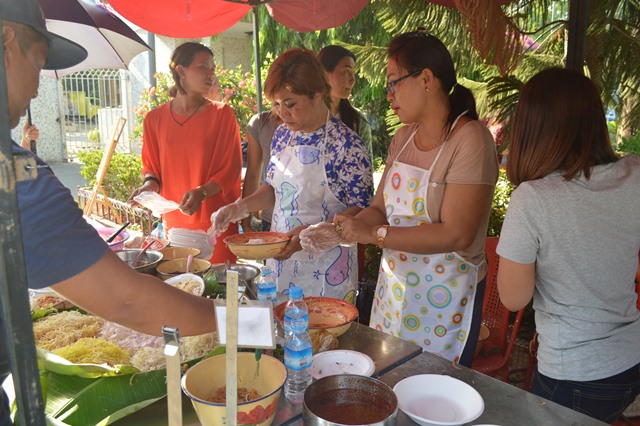 ၾကာဆံေၾကာ္ျဖင့္ ေကၽြးေမြးဒါနျပဳခဲ့ၿပီး မိတ္ကပ္ပညာရွင္ မႀကီးစန္း(ခင္စန္း ဝင္း) ကလည္း အသုပ္စံုကိုေရာင္းခ်၍ ရံပံုေငြကို