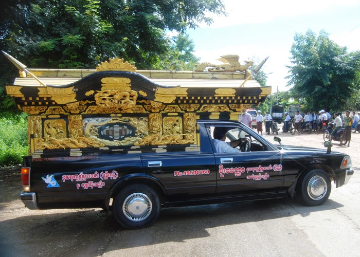 ဟုတ္ပါတယ္။ ကၽြန္ေတာ္က သက္မဲ့ပုဂၢိဳလ္ေတြရဲ႕ ေနာက္ဆံုးခရီးကို (အခမဲ့) ပို႔ေဆာင္ေပးရတဲ့ ပရဟိတသမားတစ္ေယာက္ပါ။ကၽြန္ေတာ္ အရင္တုန္းကေတာ့ သဃၤန္းကၽြန္းၿမိဳ႕နယ္ ျဗဟၼဝိဟာရေက်ာင္း တိုက္ထဲမွာေနပါတယ္။ အခုေတာ့ အမွတ္ (၁၃/က)၊ ဗုိလ္မွဴးဗထူးလမ္း၊ ၄၂ ရပ္ကြက္၊ ေျမာက္ဒဂံုၿမိဳ႕နယ္ မွာေနတယ္။ အဲဒီေနရာမွာ “နာေရးကူညီမႈအသင္း(ရန္ကုန္)” ႐ံုးခ်ဳပ္႐ွိတယ္။ ကၽြန္ေတာ္က အဲဒီအသင္းမွာ အသင္သားတစ္ေယာက္ဆိုပါေတာ့ .. ကၽြန္ေတာ့္နာမည္က “TOYOTA CROWN” ပါ။ ကၽြန္ေတာ့္ မွတ္ပံု တင္နံပါတ္က “၇ခ/၃၄၆ဝ” ပါ။ ၂ဝဝ၄ ခုႏွစ္ေလာက္ကေန ဒီကေန႔ ၂ဝ၁၃ ခုႏွစ္အထိ ဆယ္ႏွစ္နီးပါး ေလာက္ ဒီပရဟိတအလုပ္ကို လုပ္ခဲ့ရတာဆိုေတာ့ ကၽြန္ေတာ္ သယ္ပို႔ေပးခဲ့ရတဲ့ သက္ႀကီး႐ြယ္အို (အဖိုး အဖြားေတြ)၊ ထင္႐ွားေက်ာ္ၾကားသူေတြ ဘယ္ႏွစ္ေယာက္ေလာက္႐ွိမလဲဆိုတာ ေတြးၾကည့္ေပါ့ဗ်ာ … ။